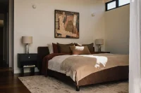 Upstairs, every bedroom opens onto a private balcony through full-height sliding doors, providing moments of solitude and a strong connection to the landscape beyond. The material palette is warm, natural, serene. Timber, warm whites, warm greys. A curated edit that steps back and lets Byron do the talking.